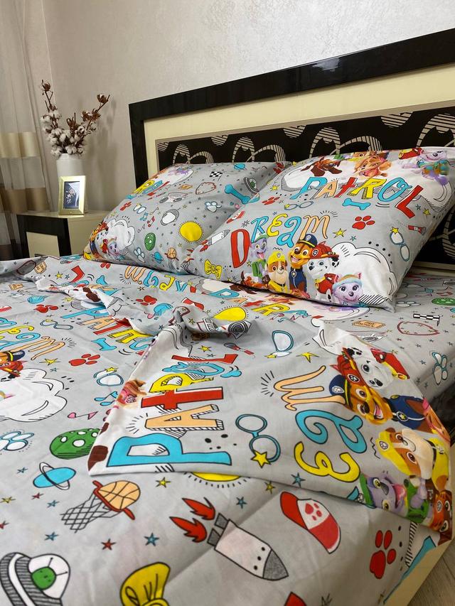 Оформіть інтер'єр спального простору вашого малюка в веселі та затишні відтінки з дитячою постільним білизною з улюбленими мультяшними героями з Патруля. Яскраві кольори та веселі персонажі створять казкову атмосферу, в якій ваш малятко буде захоплено засинати.